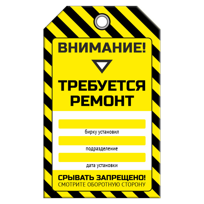 Бирка «ТРЕБУЕТСЯ РЕМОНТ!» (1 шт., двусторонняя, пластик, 70х115 мм) в Симферополе купить