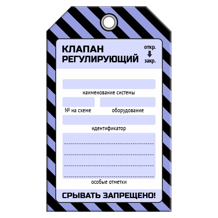 Бирка «КЛАПАН РЕГУЛИРУЮЩИЙ» (1 шт., односторонняя, пластик, 70х115 мм) в Симферополе купить