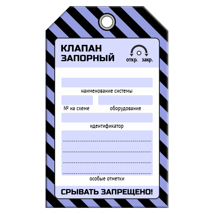 Бирка «КЛАПАН ЗАПОРНЫЙ» (1 шт., односторонняя, пластик, 70х115 мм) в Симферополе купить