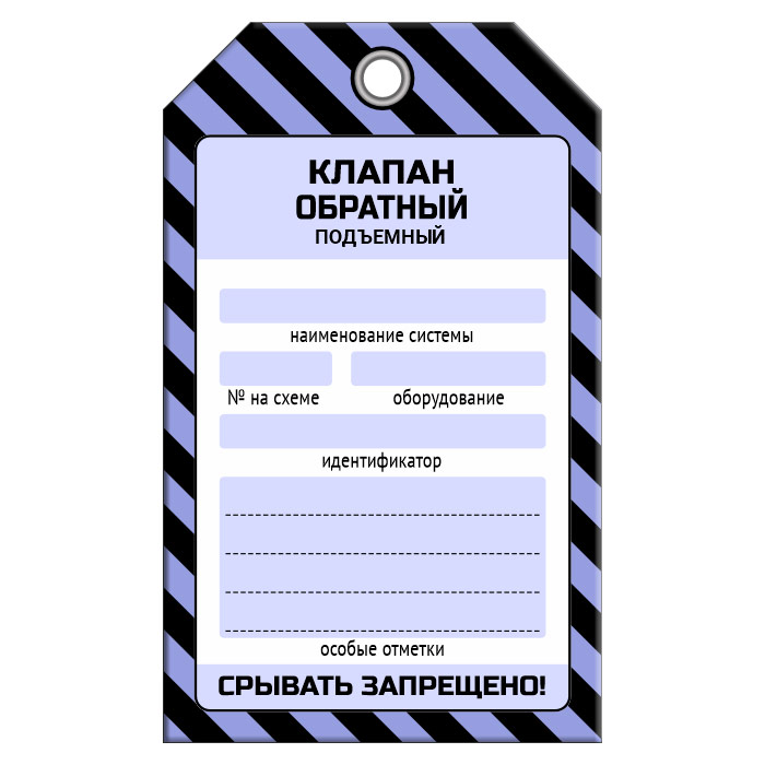 Бирка «КЛАПАН ОБРАТНЫЙ ПОДЪЕМНЫЙ» (1 шт., односторонняя, пластик, 70х115 мм) в Симферополе купить
