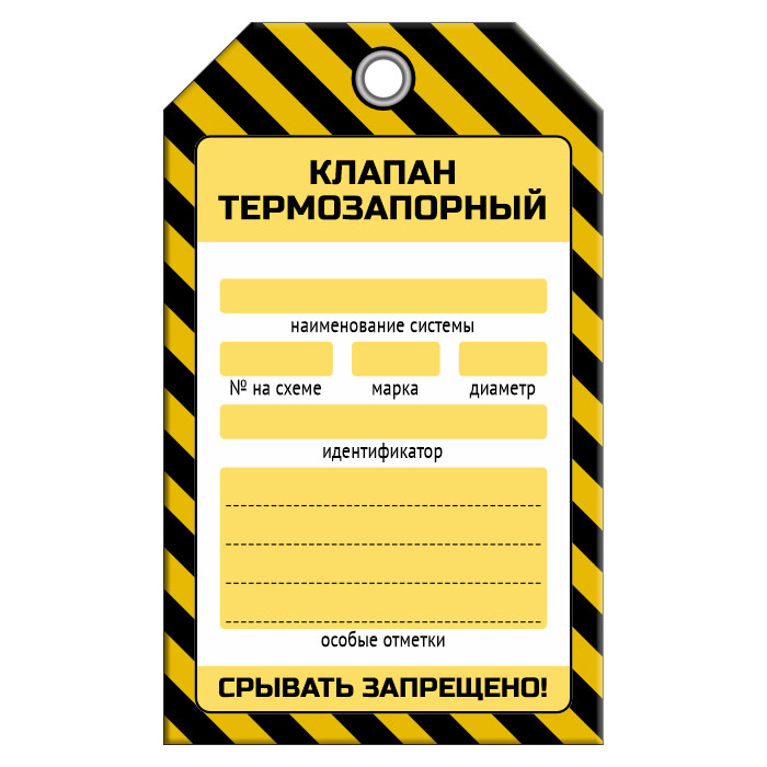Бирка «КЛАПАН ТЕРМОЗАПОРНЫЙ» (1 шт., односторонняя, пластик, 70х115 мм) в Симферополе купить