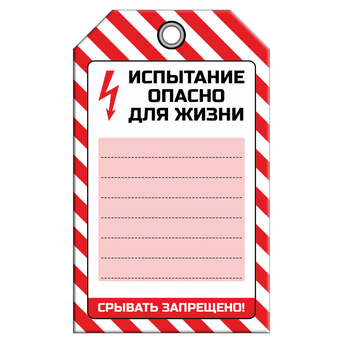 Бирка «ИСПЫТАНИЕ ОПАСНО ДЛЯ ЖИЗНИ» (1 шт., односторонняя, пластик, 70х115 мм) в Симферополе купить