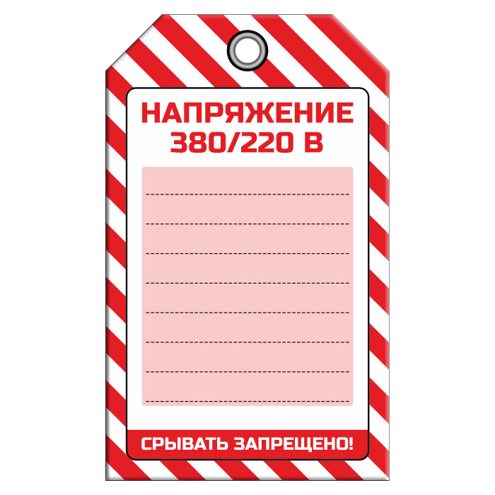 Бирка «НАПРЯЖЕНИЕ 380/220 В» (1 шт., односторонняя, пластик, 70х115 мм) в Симферополе купить