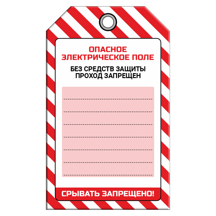 Бирка «ОПАСНОЕ ЭЛЕКТРИЧЕСКОЕ ПОЛЕ» (1 шт., односторонняя, пластик, 70х115 мм) в Симферополе купить