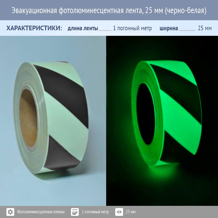 Эвакуационная фотолюминесцентная лента, 25 мм (черно-белая) в Симферополе купить