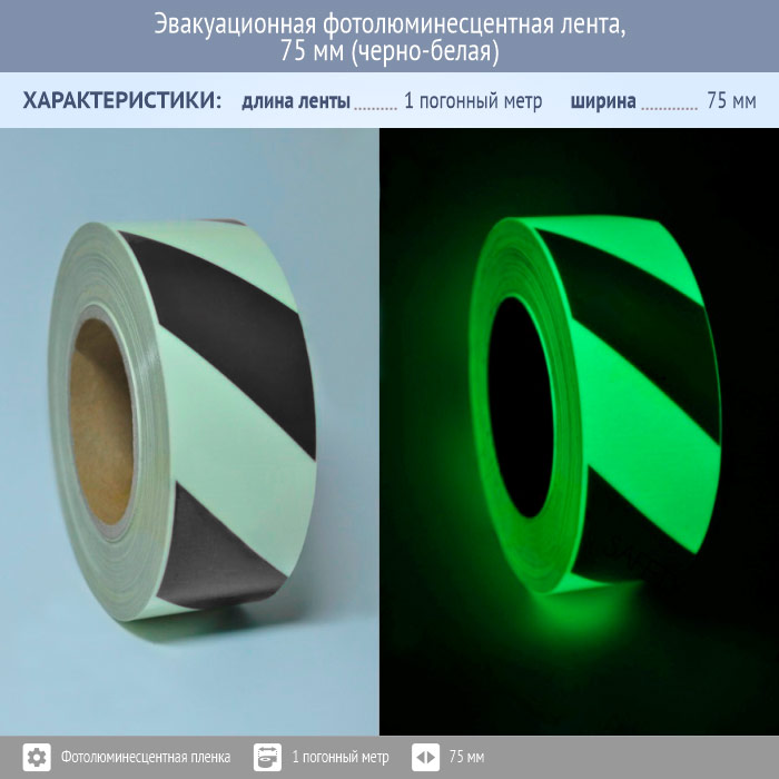 Эвакуационная фотолюминесцентная лента, 75 мм (черно-белая) в Симферополе купить