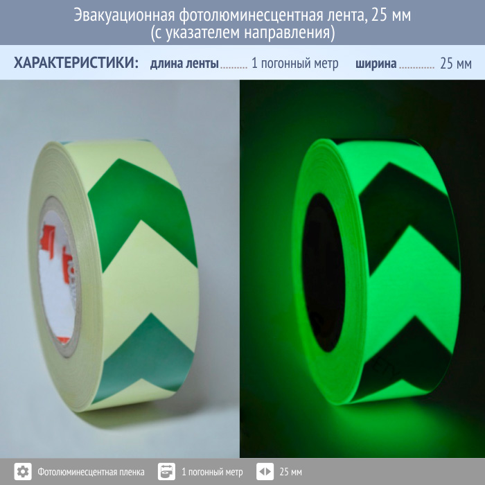Эвакуационная фотолюминесцентная лента, 25 мм (с указателем направления) в Симферополе купить