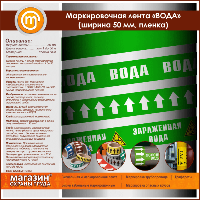 Маркировочная лента «ВОДА» (ширина 50 мм, самоклеящаяся плёнка) в Симферополе купить