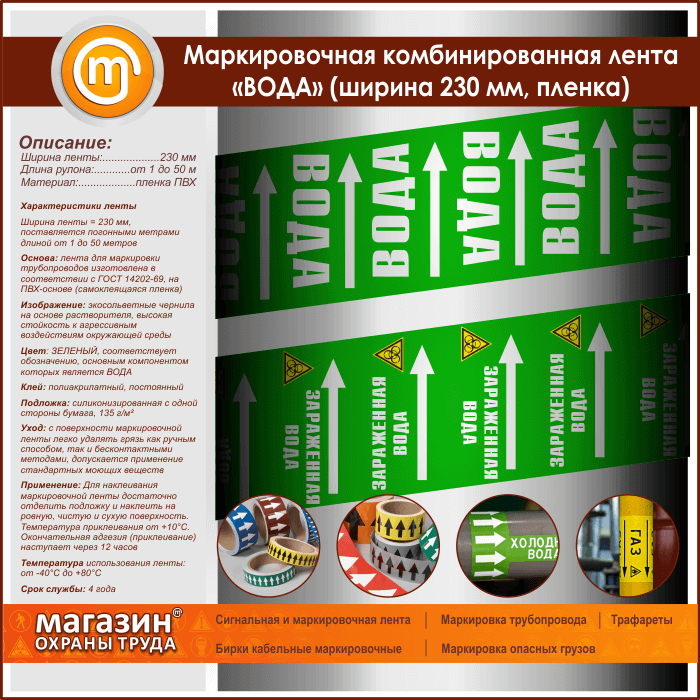 Маркировочная комбинированная лента «ВОДА» (ширина 230 мм, самоклеящаяся плёнка) в Симферополе купить