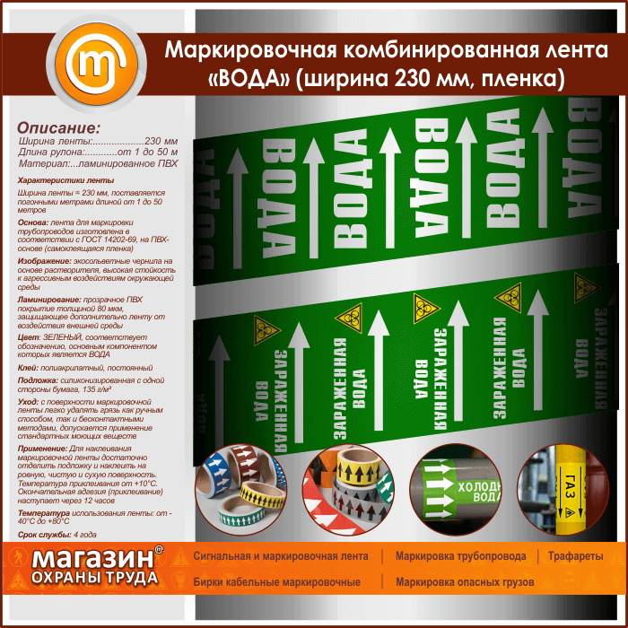 Маркировочная комбинированная лента «ВОДА» (ширина 230 мм, самоклеящаяся плёнка с ламинированием) в Симферополе купить