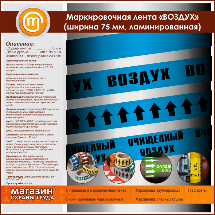Маркировочная лента «ВОЗДУХ» (ширина 75 мм, самоклеящаяся плёнка) в Симферополе купить