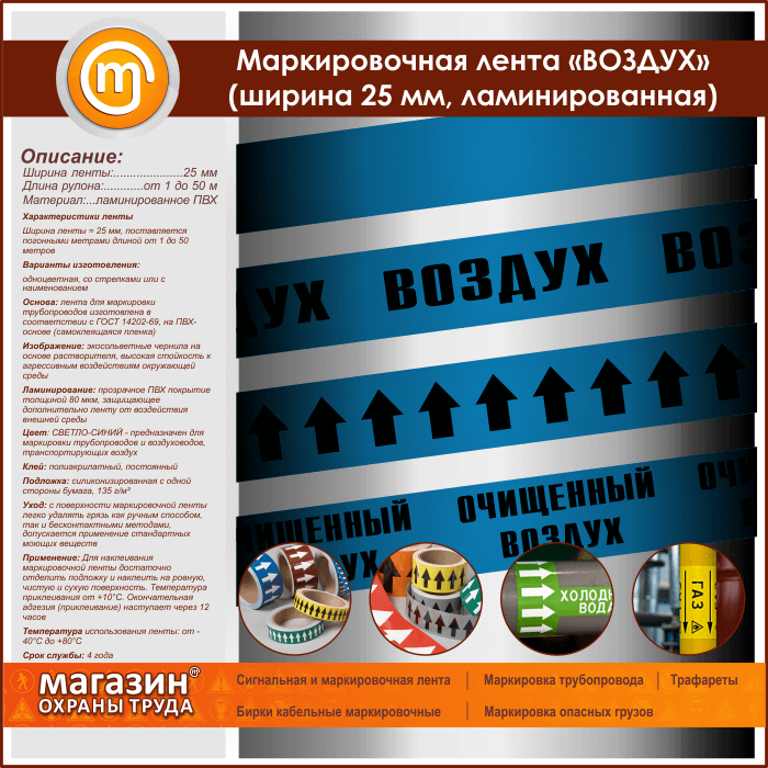 Маркировочная лента «ВОЗДУХ» (ширина 25 мм, самоклеящаяся плёнка с ламинированием) в Симферополе купить
