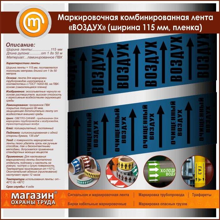 Маркировочная комбинированная лента «ВОЗДУХ» (ширина 115 мм, самоклеящаяся плёнка с ламинированием) в Симферополе купить