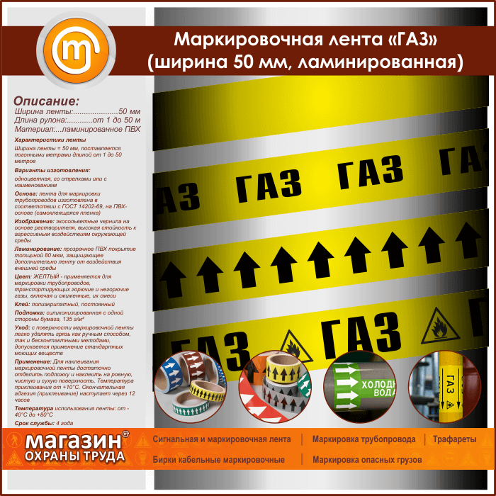 Маркировочная лента «ГАЗ» (ширина 50 мм, самоклеящаяся плёнка) в Симферополе купить