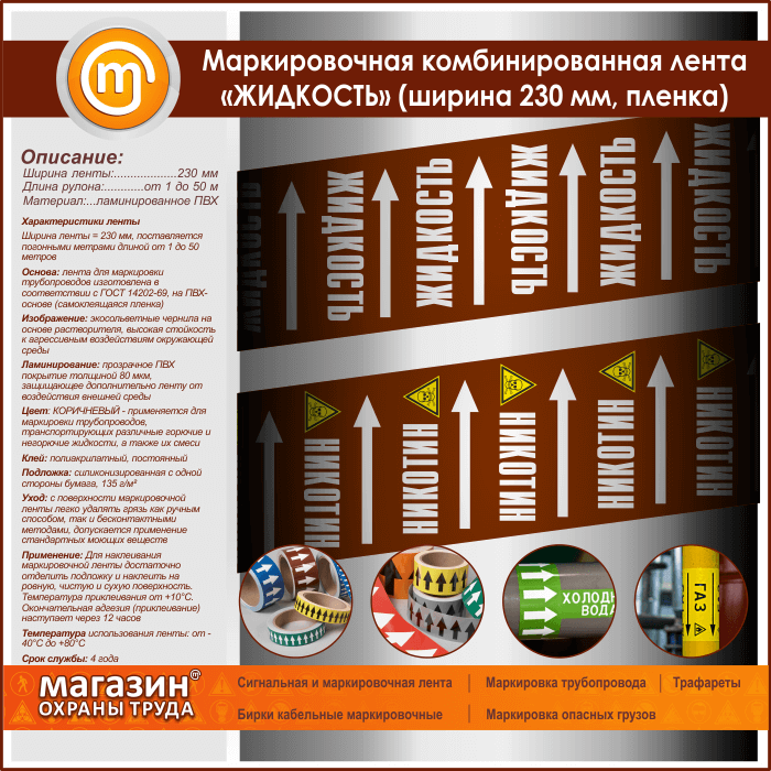 Маркировочная комбинированная лента «ЖИДКОСТЬ» (ширина 230 мм, самоклеящаяся плёнка с ламинированием) в Симферополе купить