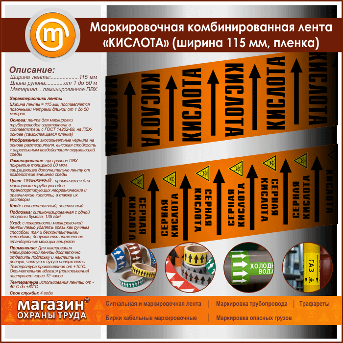 Маркировочная комбинированная лента «КИСЛОТА» (ширина 115 мм, самоклеящаяся плёнка) в Симферополе купить