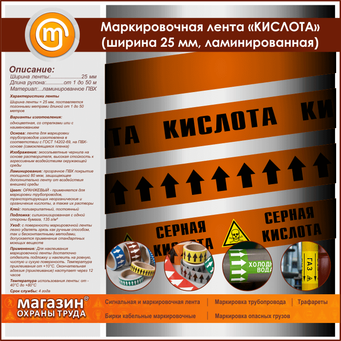 Маркировочная лента «КИСЛОТА» (ширина 25 мм, самоклеящаяся плёнка с ламинированием) в Симферополе купить