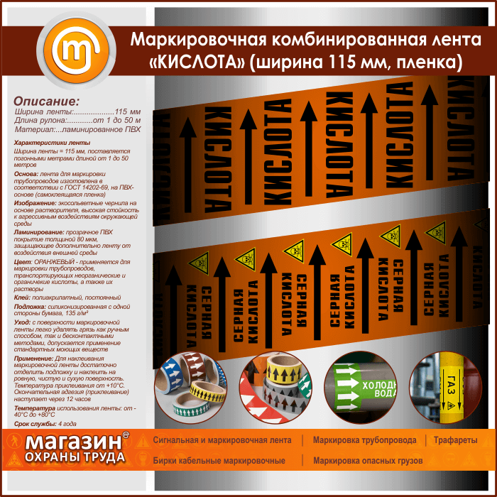 Маркировочная комбинированная лента «КИСЛОТА» (ширина 115 мм, самоклеящаяся плёнка с ламинированием) в Симферополе купить