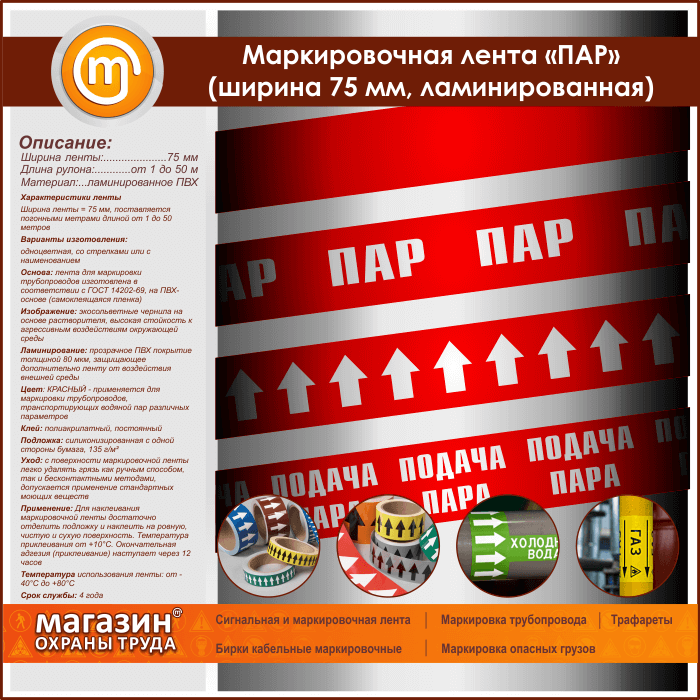 Маркировочная лента «ПАР» (ширина 75 мм, самоклеящаяся плёнка) в Симферополе купить