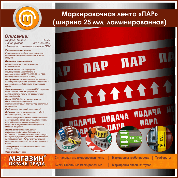 Маркировочная лента «ПАР» (ширина 25 мм, самоклеящаяся плёнка с ламинированием) в Симферополе купить