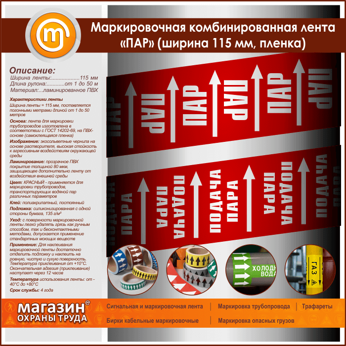 Маркировочная комбинированная лента «ПАР» (ширина 115 мм, самоклеящаяся плёнка с ламинированием) в Симферополе купить
