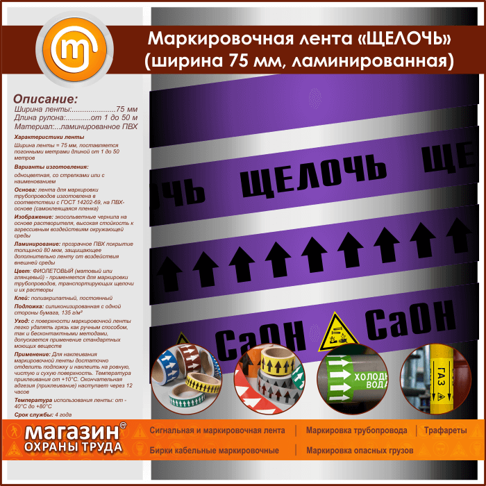 Маркировочная лента «ЩЕЛОЧЬ» (ширина 75 мм, самоклеящаяся плёнка с ламинированием) в Симферополе купить
