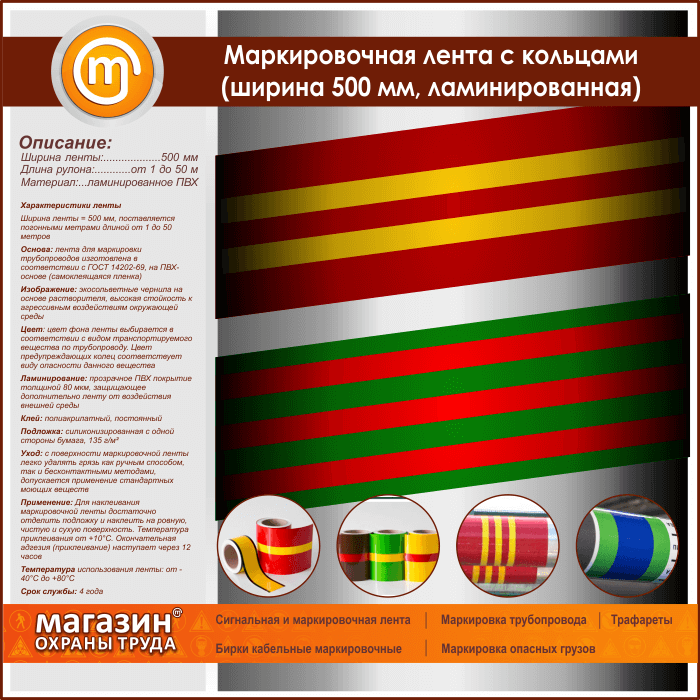 Маркировочная лента с кольцами (ширина 500 мм, самоклеящаяся плёнка с ламинированием) в Симферополе купить