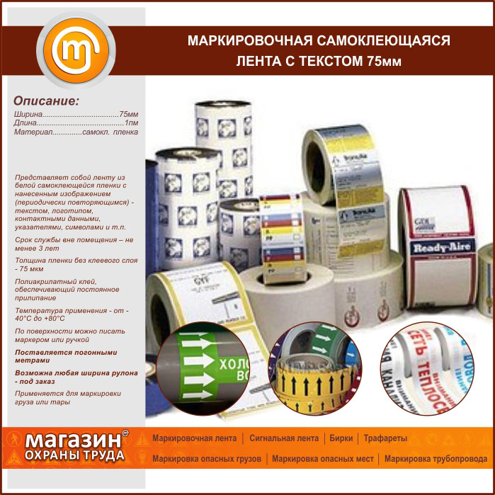 Маркировочная самоклеящаяся лента с текстом 75 мм в Симферополе купить