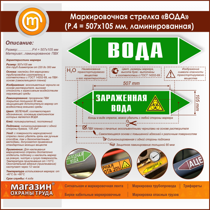 Маркировочная стрелка «ВОДА» (P.4 = 507х105 мм, самоклеящаяся плёнка с ламинированием) в Симферополе купить