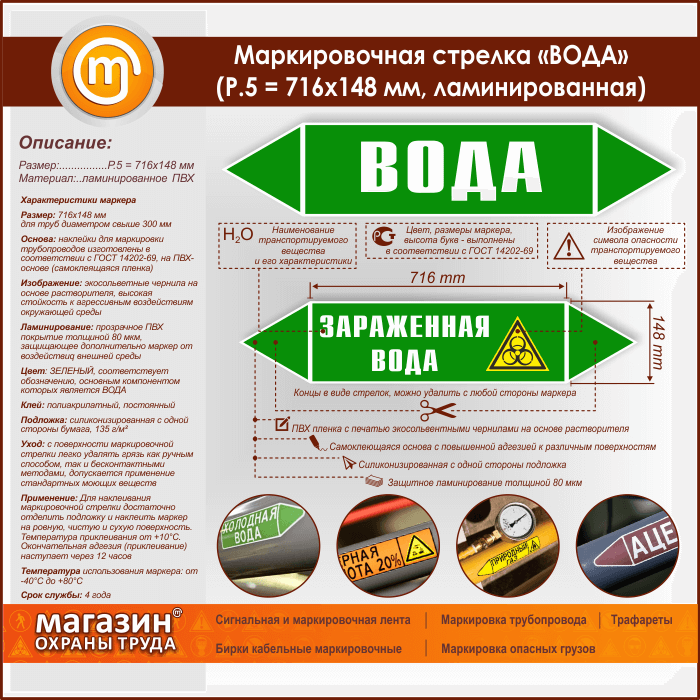 Маркировочная стрелка «ВОДА» (P.5 = 716х148 мм, самоклеящаяся плёнка с ламинированием) в Симферополе купить
