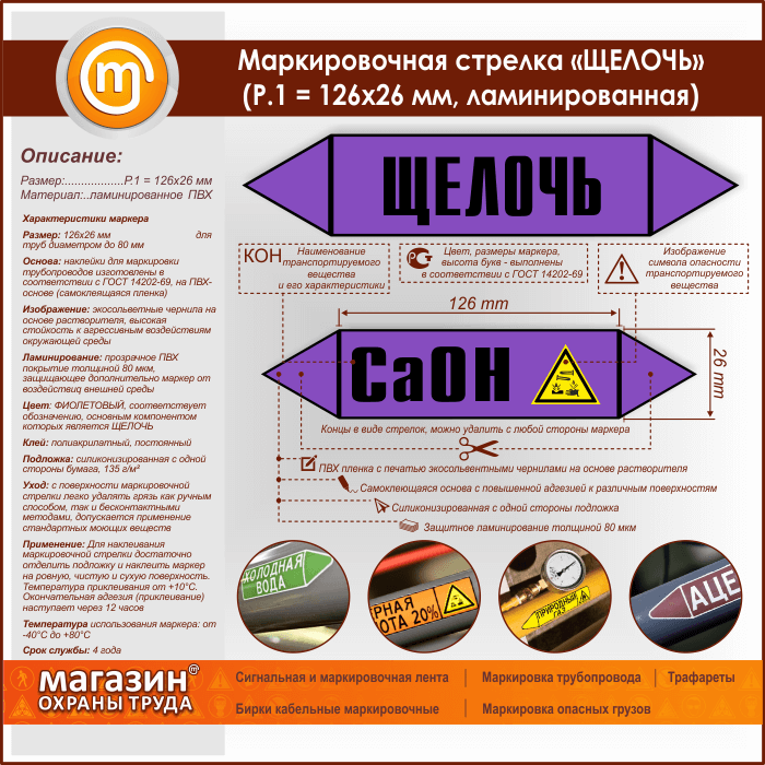 Маркировочная стрелка «ЩЕЛОЧЬ» (Р.1 = 126х26 мм, самоклеящаяся плёнка с ламинированием) в Симферополе купить