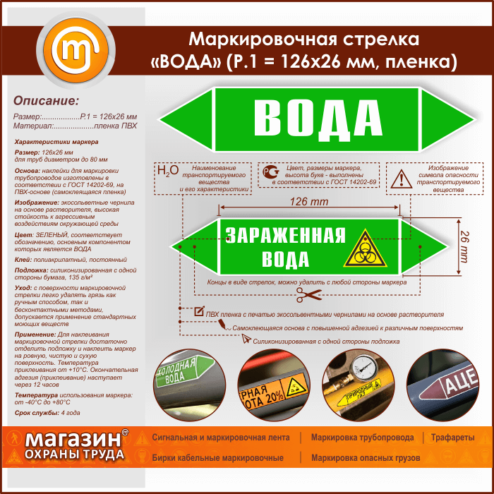 Маркировочная стрелка «ВОДА» (Р.1 = 126х26 мм, самоклеящаяся плёнка) в Симферополе купить