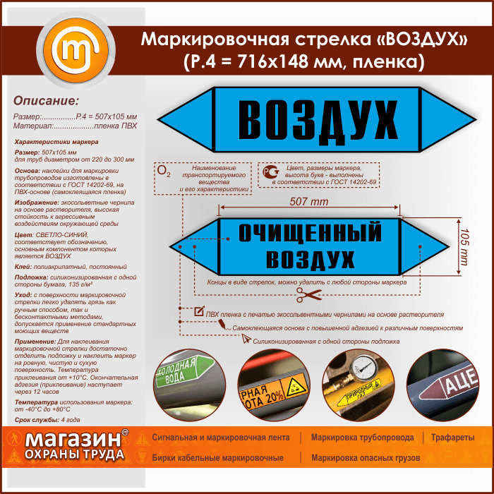 Маркировочная стрелка «ВОЗДУХ» (P.4 = 507х105 мм, самоклеящаяся плёнка) в Симферополе купить