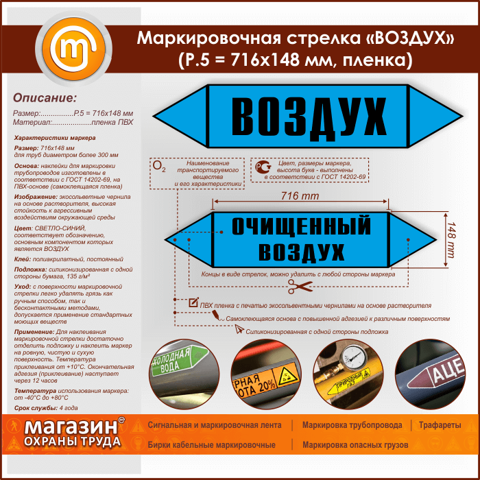 Маркировочная стрелка «ВОЗДУХ» (P.5 = 716х148 мм, самоклеящаяся плёнка) в Симферополе купить