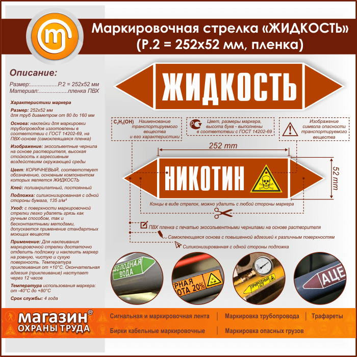 Маркировочная стрелка «ЖИДКОСТЬ» (P.2 = 252х52 мм, самоклеящаяся плёнка) в Симферополе купить