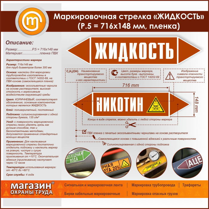 Маркировочная стрелка «ЖИДКОСТЬ» (P.5 = 716х148 мм, самоклеящаяся плёнка) в Симферополе купить