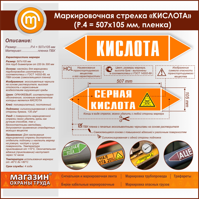 Маркировочная стрелка «КИСЛОТА» (P.4 = 507х105 мм, самоклеящаяся плёнка) в Симферополе купить