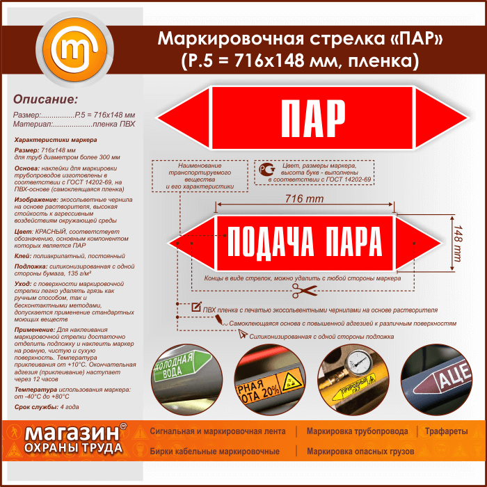 Маркировочная стрелка «ПАР» (P.5 = 716х148 мм, самоклеящаяся плёнка) в Симферополе купить