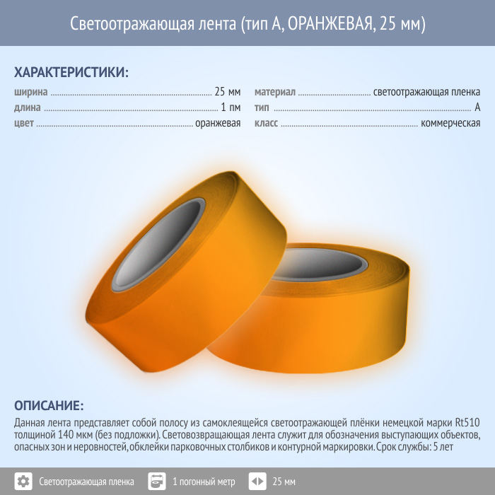 Светоотражающая однородная лента (тип А, ОРАНЖЕВАЯ, 25 мм х 1 п.м.) в Симферополе купить