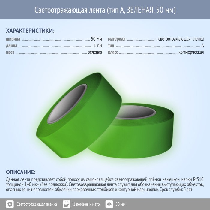 Светоотражающая однородная лента (тип А, ЗЕЛЕНАЯ, 50 мм х 1 п.м.) в Симферополе купить