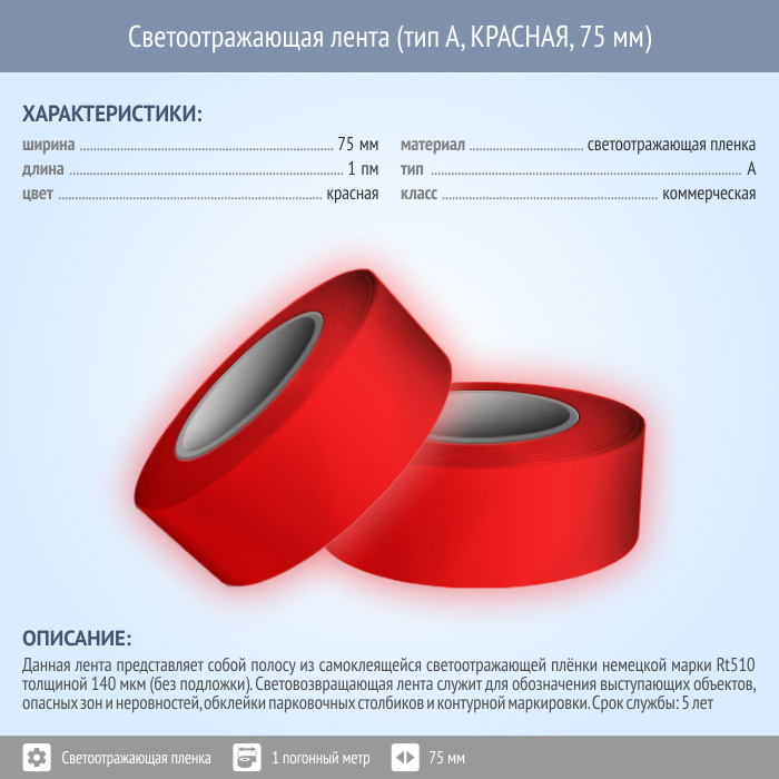 Светоотражающая однородная лента (тип А, КРАСНАЯ, 75 мм х 1 п.м.) в Симферополе купить