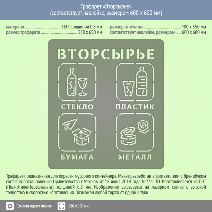 Трафарет «Вторсырье» (соответствует наклейке, размером 600х600 мм) в Симферополе купить