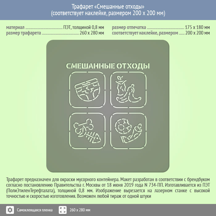 Трафарет «Смешанные отходы» (соответствует наклейке, размером 200х200 мм) в Симферополе купить