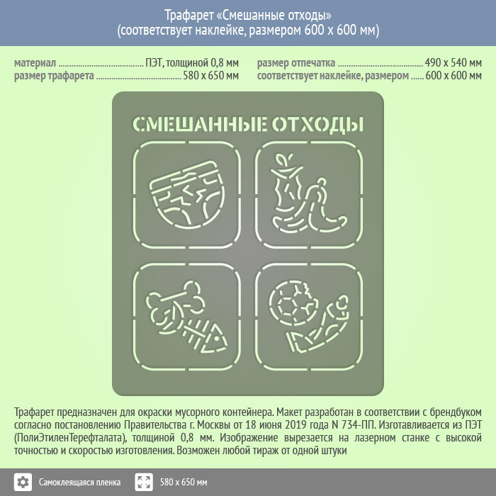 Трафарет «Смешанные отходы» (соответствует наклейке, размером 600х600 мм) в Симферополе купить