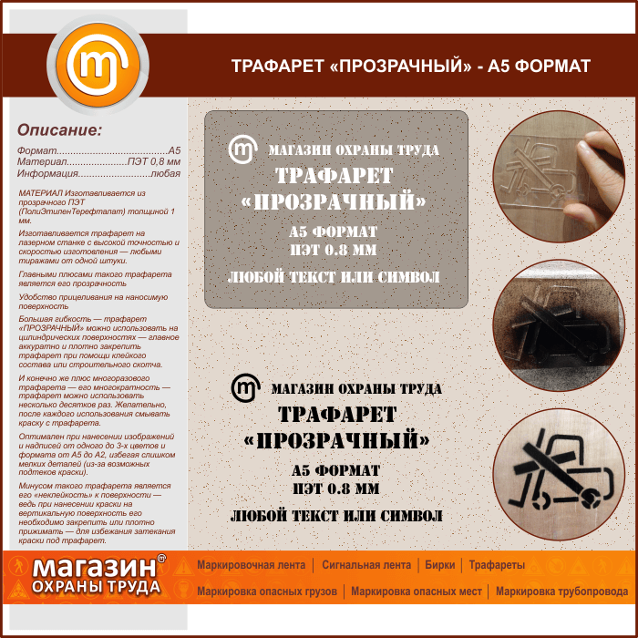 Трафарет «ПРОЗРАЧНЫЙ» (А5 формат, ПЭТ 0,8 мм) в Симферополе купить